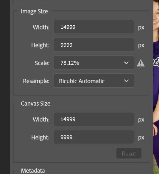 Although rare, I need a relatively large image size, about 20,000 pixels, for printing on a blanket to achieve 300 dpi with Printful's printer. However, when I upload an image at 15,000 pixels, which appears to be the maximum resolution Photoshop accepts, it only results in 126 dpi, which is below the desired quality.