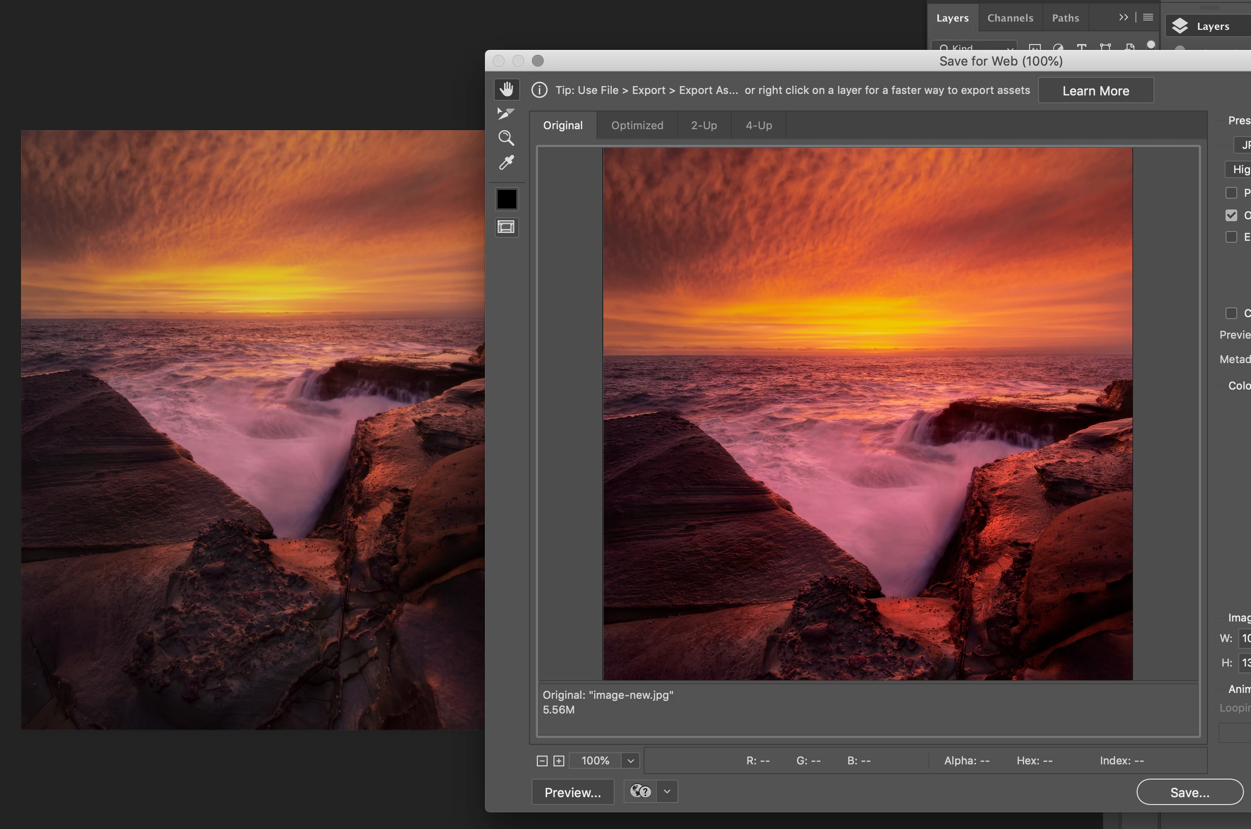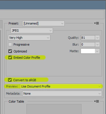 Photoshop & export to Web look different