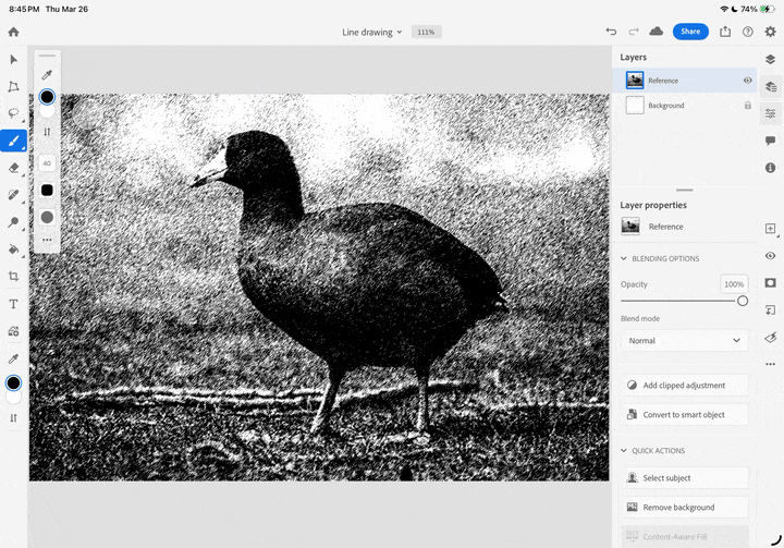 This pertains to photoshop for ipad. I want to use a tonal drawing as a template for a line drawing. The ideal would be to be able to make the template disappear from time to time (or better yet become white) so I could see the line drawing against a white background until I am happy with it. Then I would just want to delete the original. Do I need 3 layers or just 2?