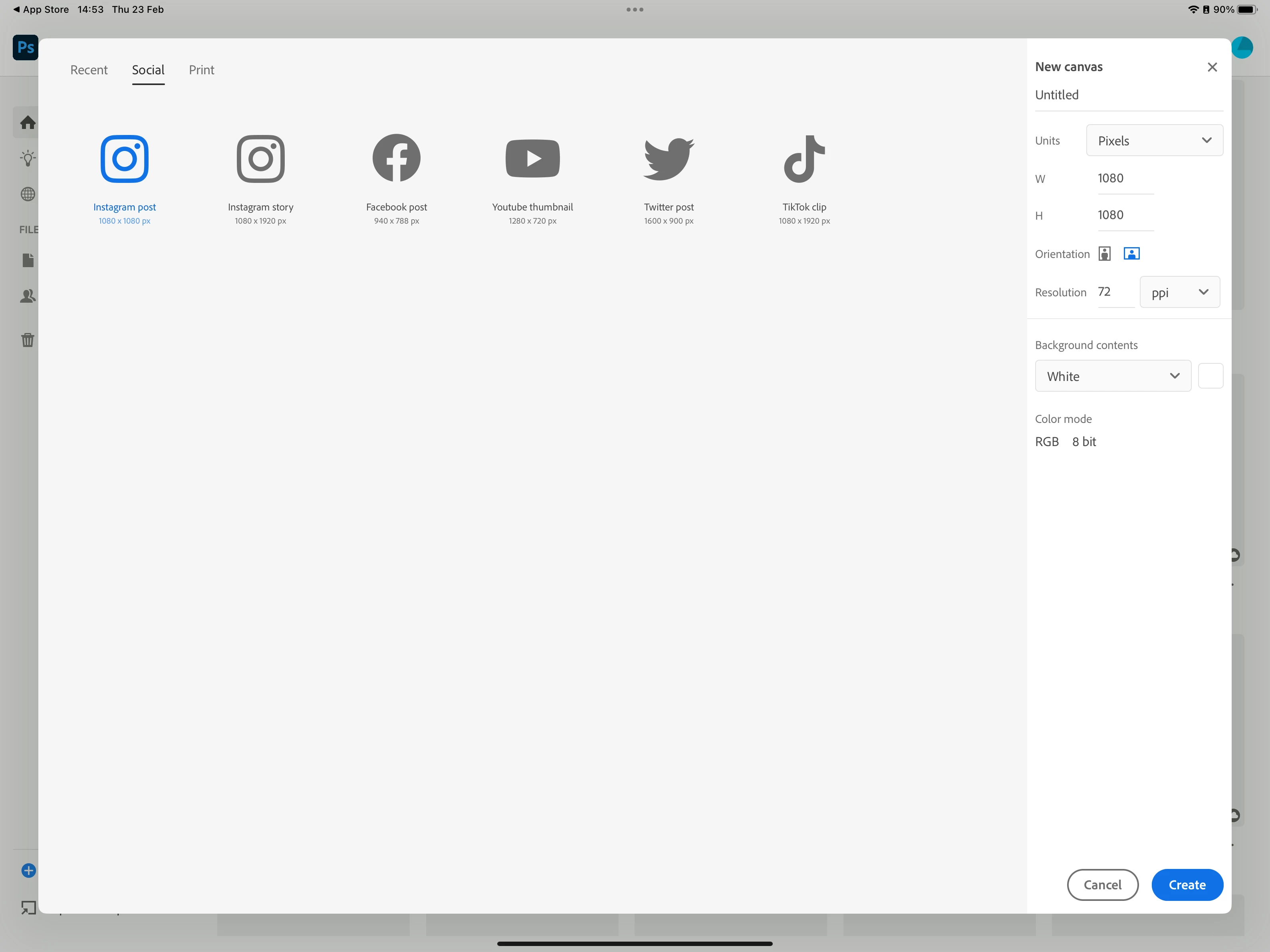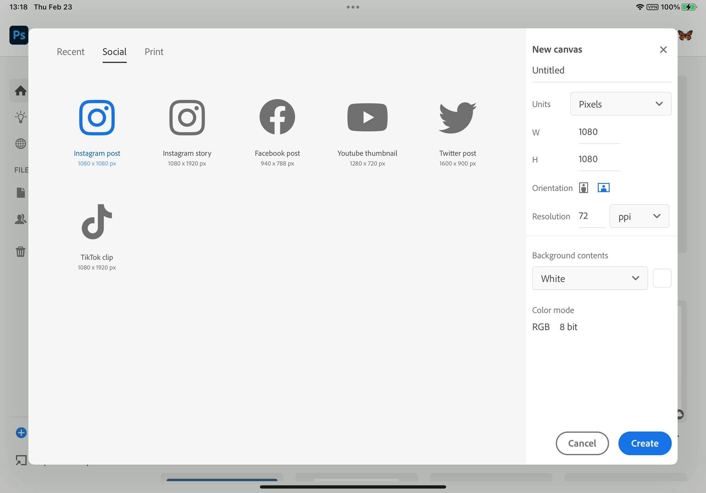 On Photoshop for iPad on my iPad Pro, the preset canvas options for Screen, Film, and Video categories are all missing. They used to be there until recently but now all I have is Recent, Social and Print (see image). I've tried an app reset and reinstalling the app to no avail. I'd love to know how to get them back. Thanks in advance.