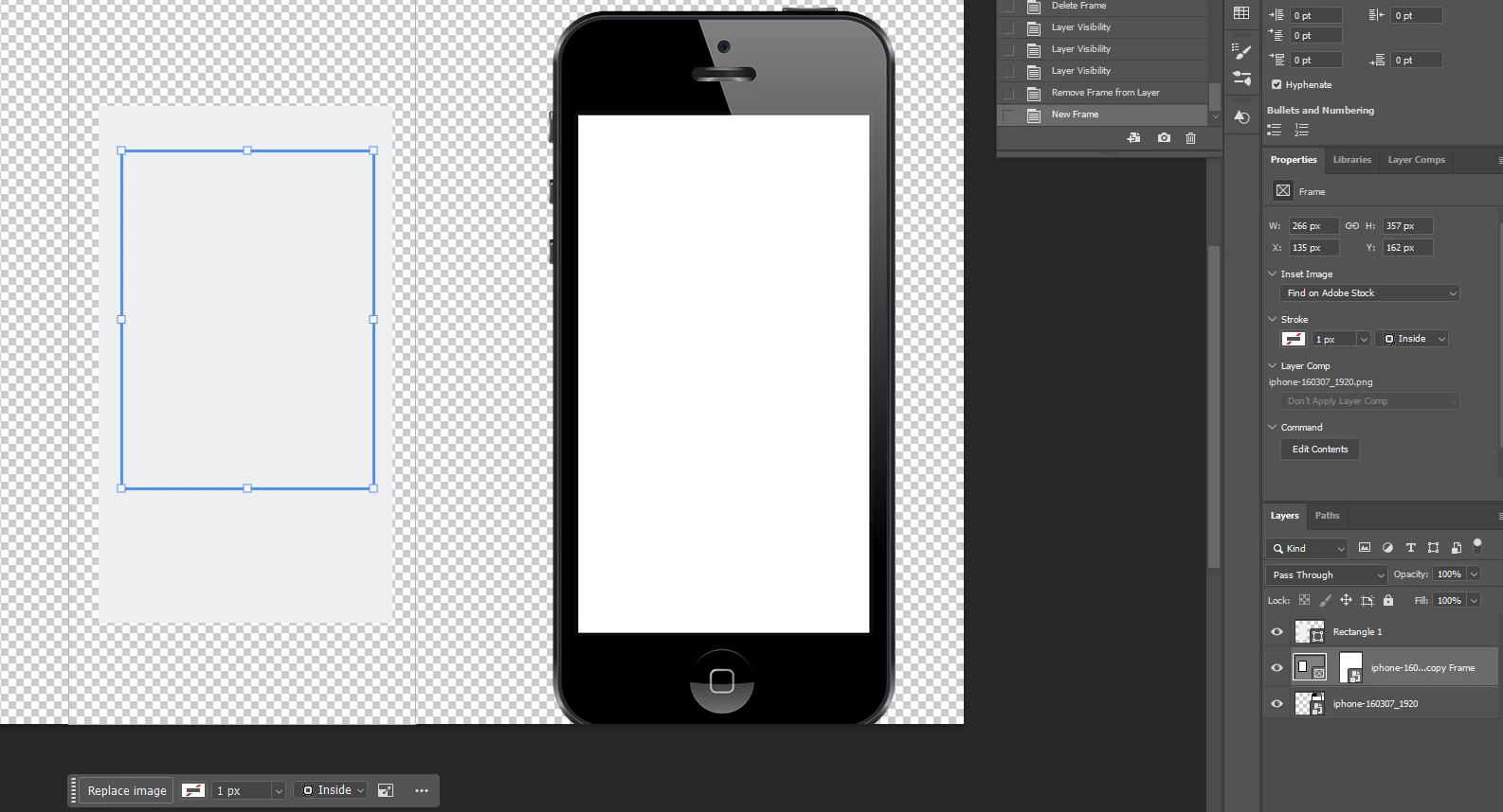 (I was trying to draw a frame on "Rectangle 1", but the frame got applied to the iPhone image)