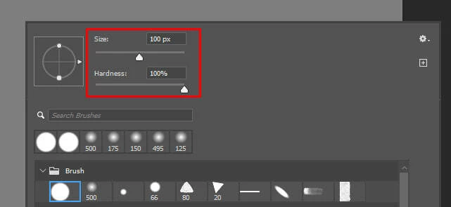 Photoshop freezes when trying to change the size or hardness of the brush.