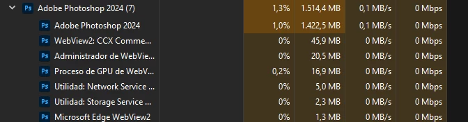 El año pasado tenia instalado Photoshop CC 24 en una PC con Intel i7 8va generacion con una placa geforce 1030 de 2 gb ademas de contar con 16 gb de ram. Pensé que el problema sería que la PC ya no soportaria las necesidades de PS el cual iniciar el programa consumía 8GB de memoria, algo que me parecía super raro.