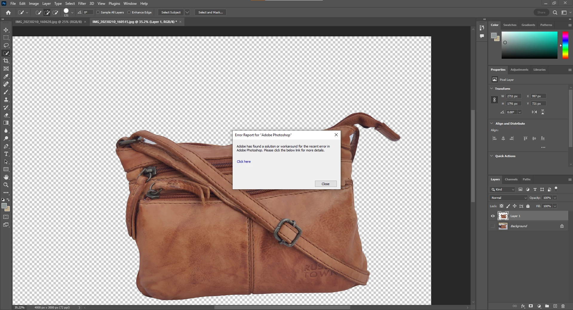 We are facing an issue in Photoshop whenever we do any work or edit images the software get closed automatically an leave an error message which results in force stop of the software. Please help us to solve this issue ASAP.