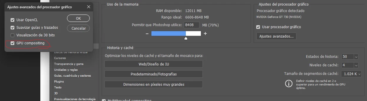 어도비에서 제공하는 https://helpx.adobe.com/kr/photoshop/kb/photoshop-cc-gpu-card-faq.html#GraphicsProcessorUse 의 안내사항도 모두 이행했습니다