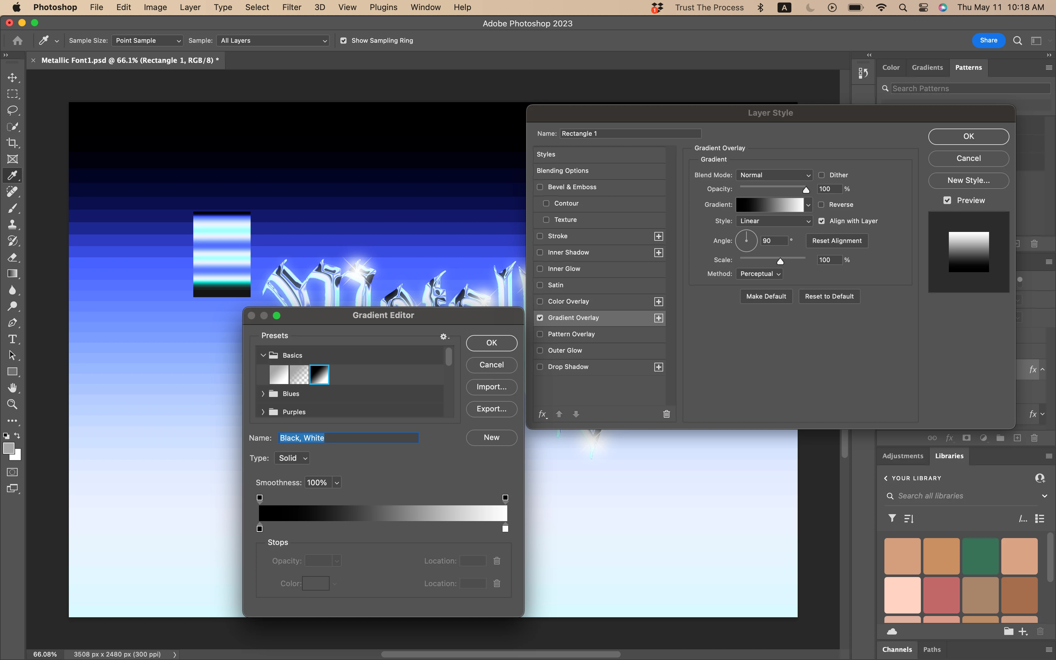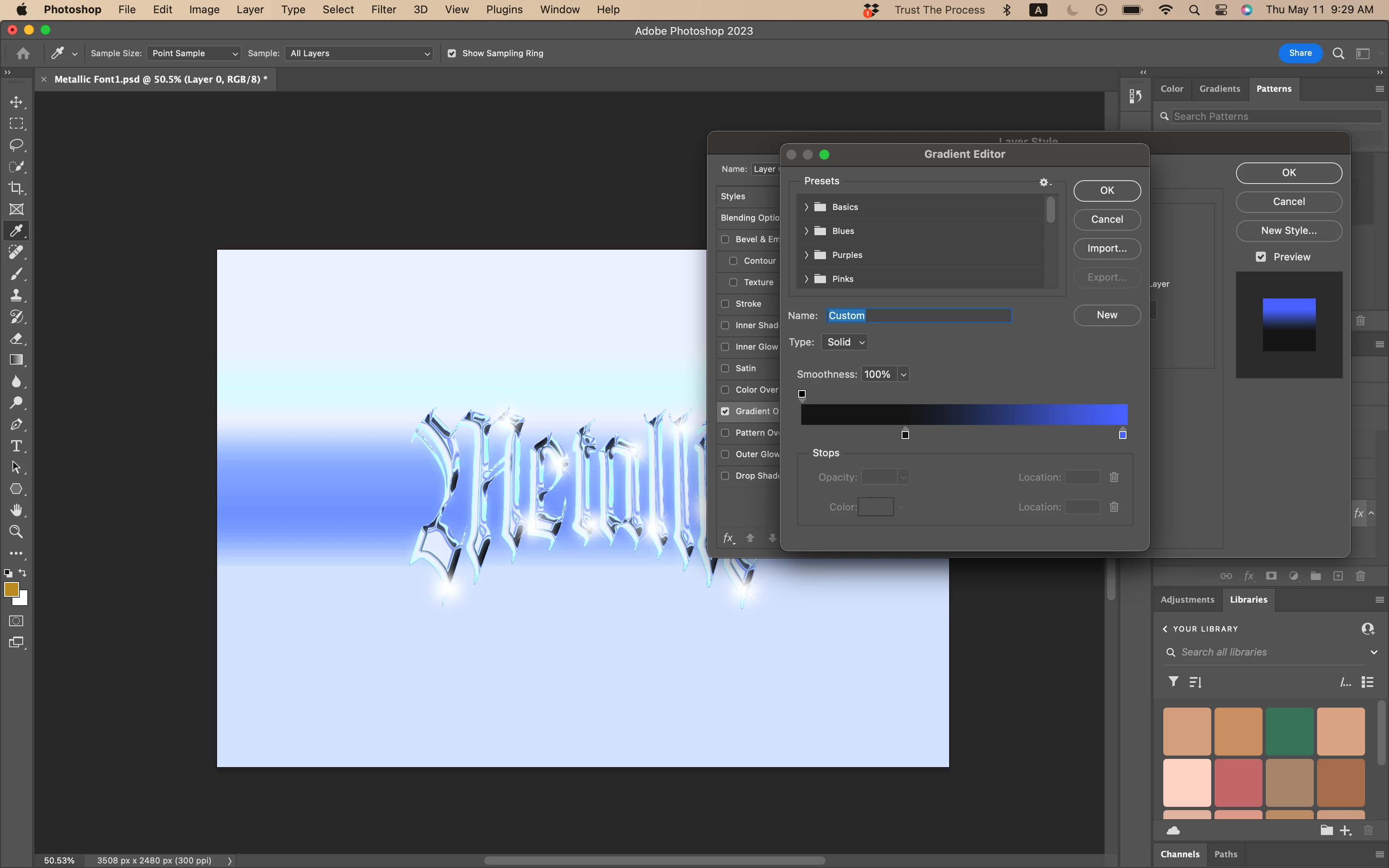Whenever I attempt to use a Gradient Overlay on my Background the colors I am applying to the Gradient do not match the colors being presented on my Background layer. I should mention I am designing Text with its own Gradient Overlay, I believe Photoshop is confusing my texts gradient overlay with the background gradient overlay, how would I go about fixing this issue? Its been bugging me all day and I cant move past it, I know it has to be a simple fix that im just not seeing!