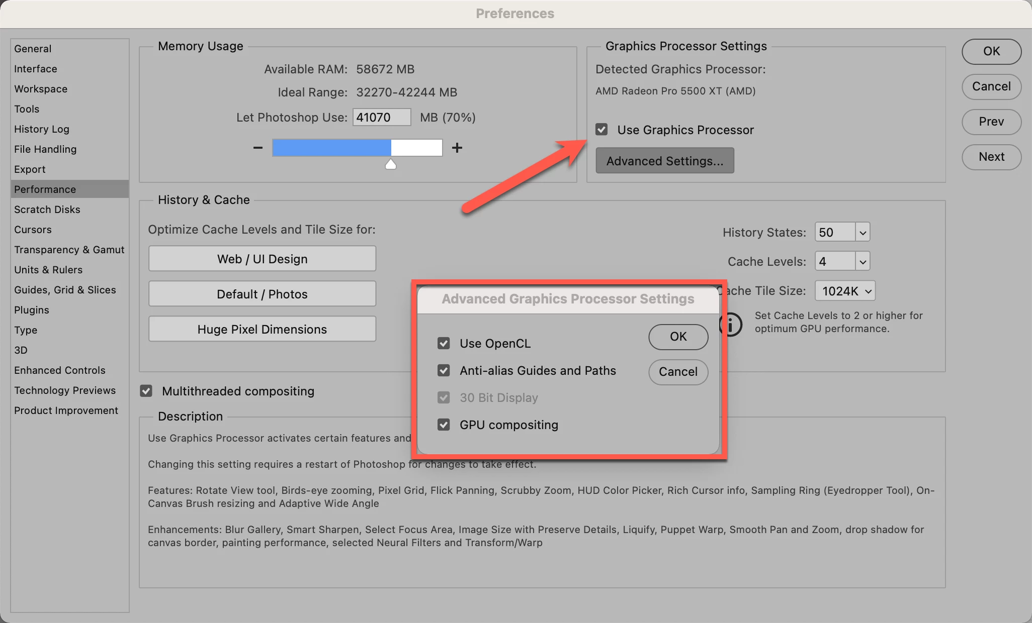 Photoshop Graphics problem for Radeon Pro 580x 8 Gb graphics card 2019 27" iMac