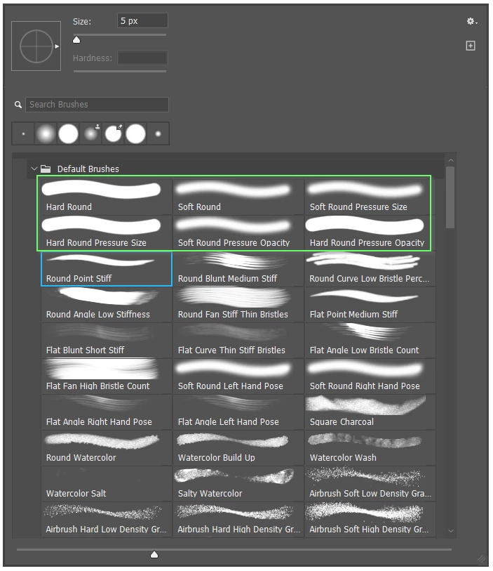 Photoshop hardness doesn't appear on ay brush besides general brushes