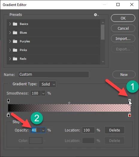 Photoshop: How to set different opacity on image from 100% to 40%?