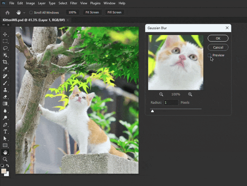Why isn't there a live preview of effects and filters? Whenever I apply a Gaussian blur, I have to toggle the "Preview" on and off once to see the effect in the main window!