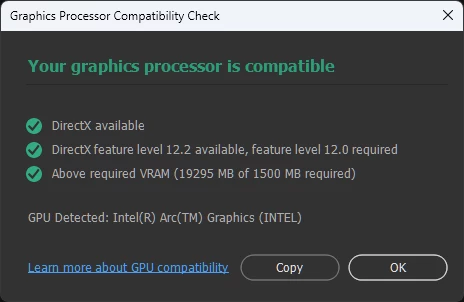 GPU: Intel Arc Graphics + NPU Assisted (latest driver update installed)