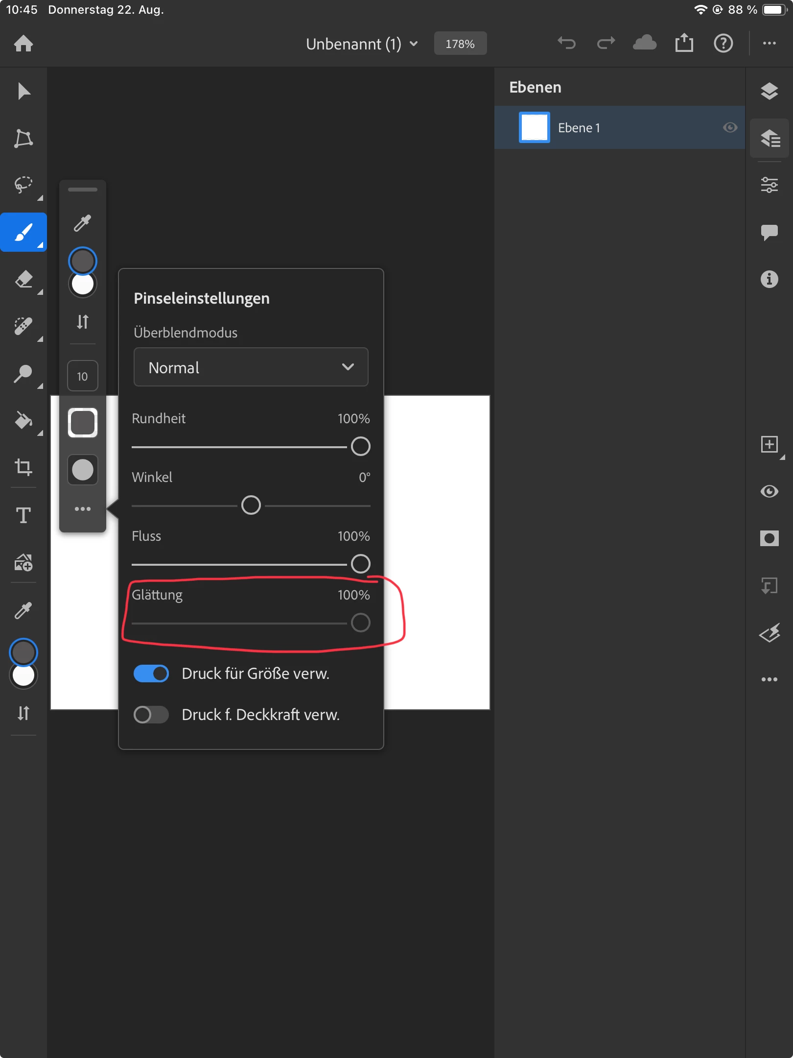 Photoshop iPad App: Brush Smoothing Control not working anymore