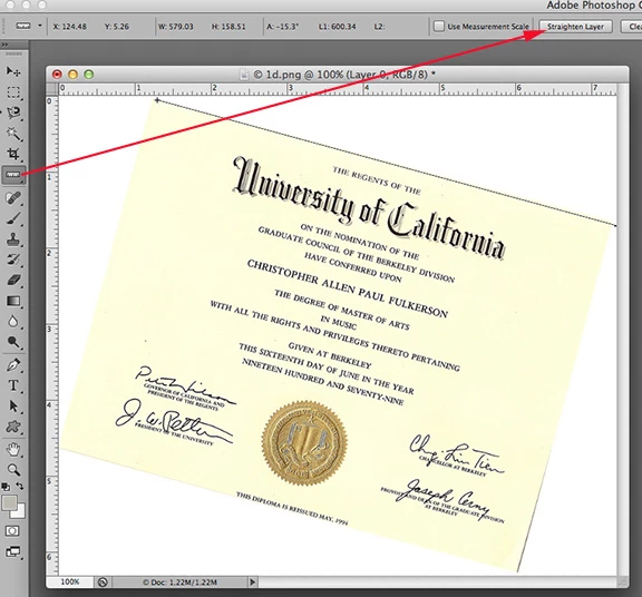 Hi, I need some help with photoshop. I scanned a item on a piece of paper and it is croocked on the page. I cant find how to straighten it and be able to erase parts of the item? Please help me , thanks Wendy