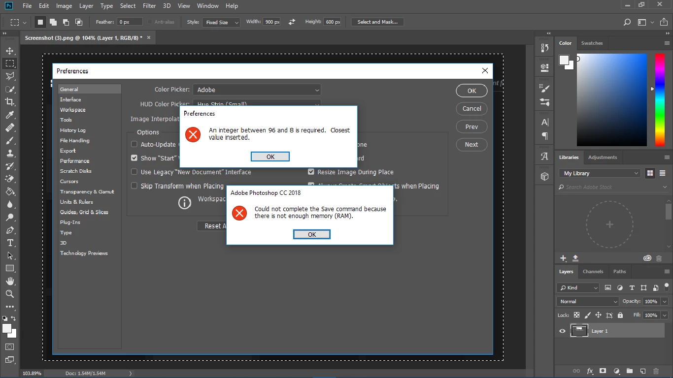 Photoshop Keeps Crashing when Using Text Tool & Not Enough RAM False Warning
