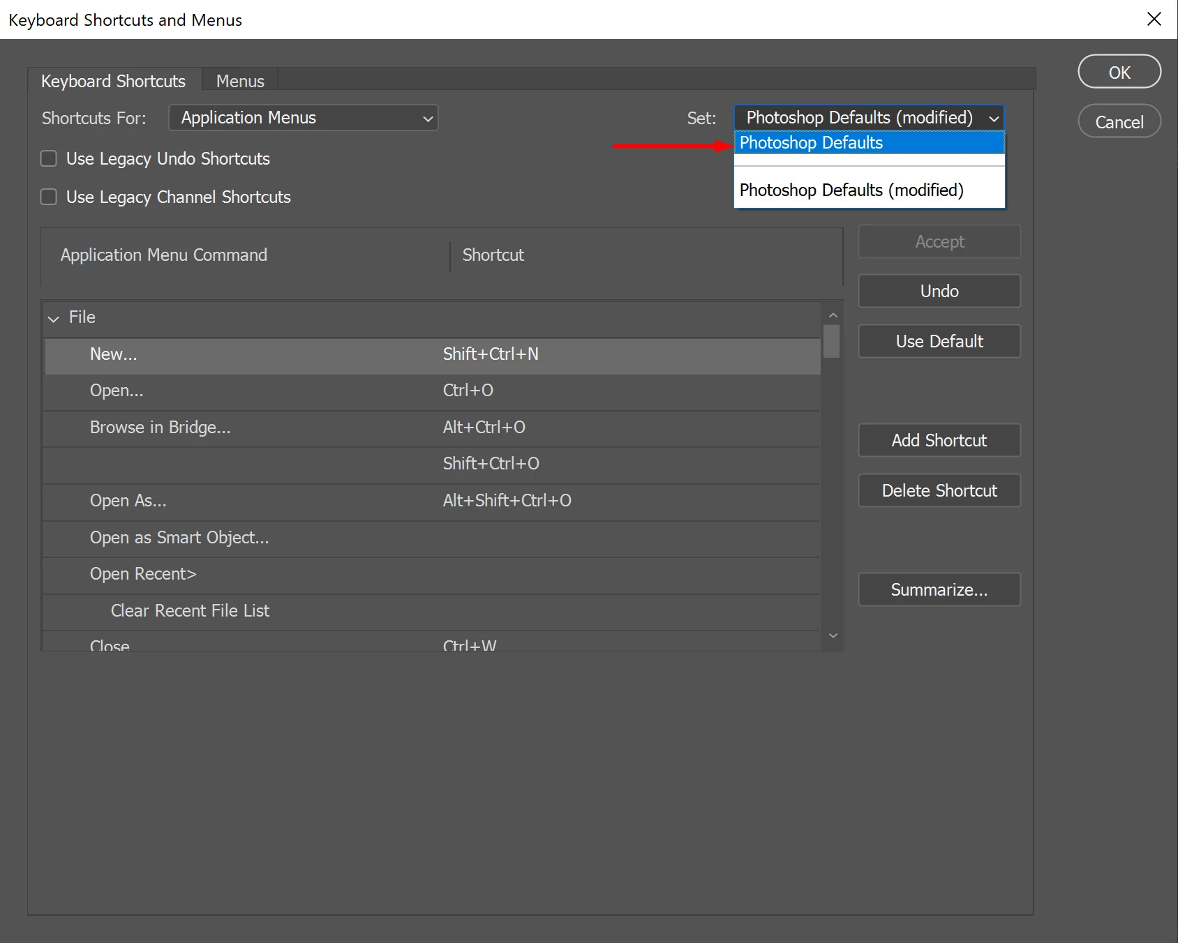 I'll try resetting the keyboard shortcuts, to see what happens.