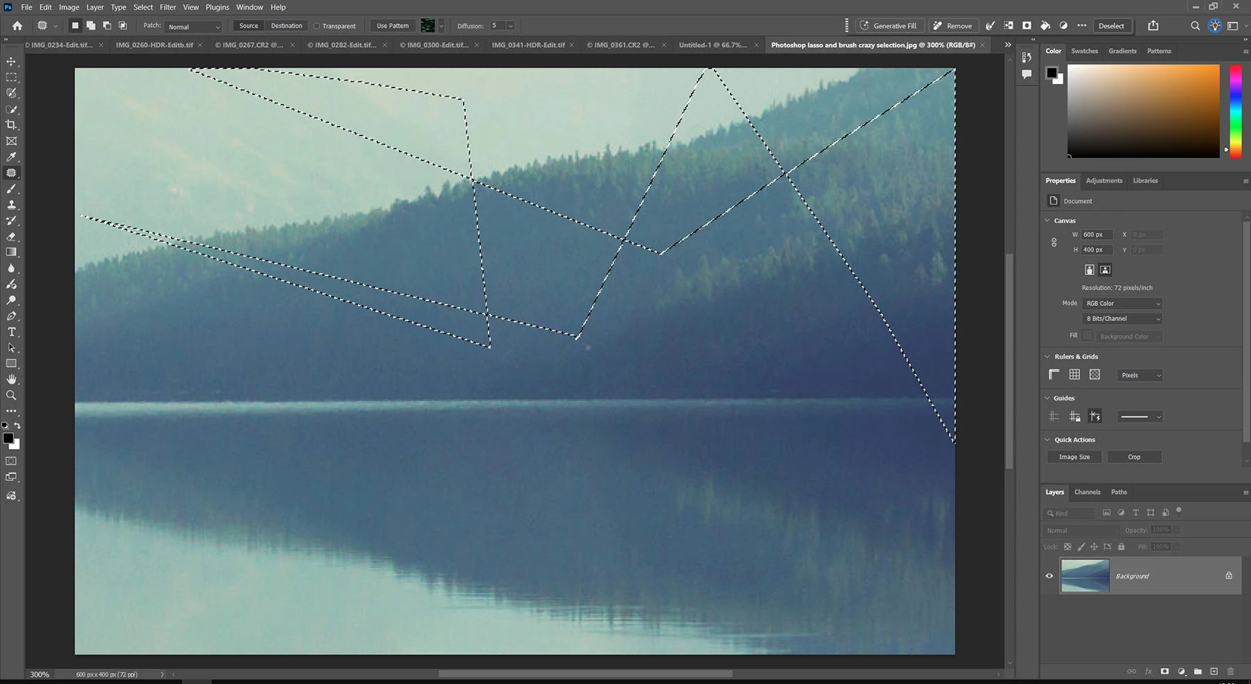 I have a recurring issue when using the brush or lasso tools, or any removal tool (spot healing brush, path tool etc) where a simple initial click on an image results in a crazy selection being made.