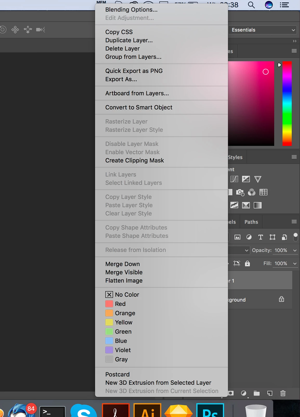 Photoshop layers. Context menu rolled up. Type tool lag issue.