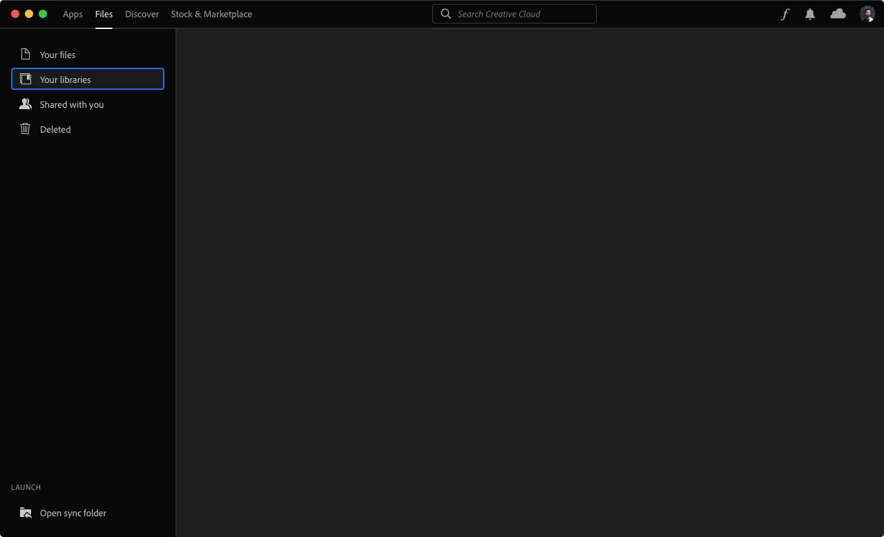When I go to Photoshop I see some elements on my Libraries panel, but when I use the app (Mac), it's empty.