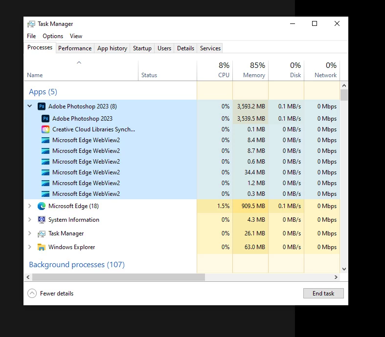 High I am finding at times my memory usage goes sky high when running photoshop and simple tasks can take a long time to complete.