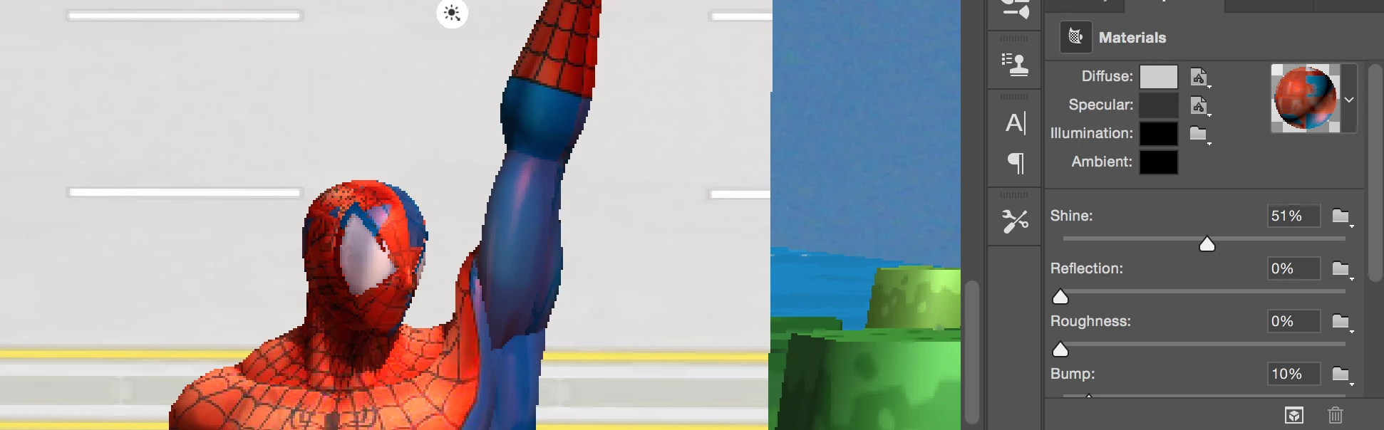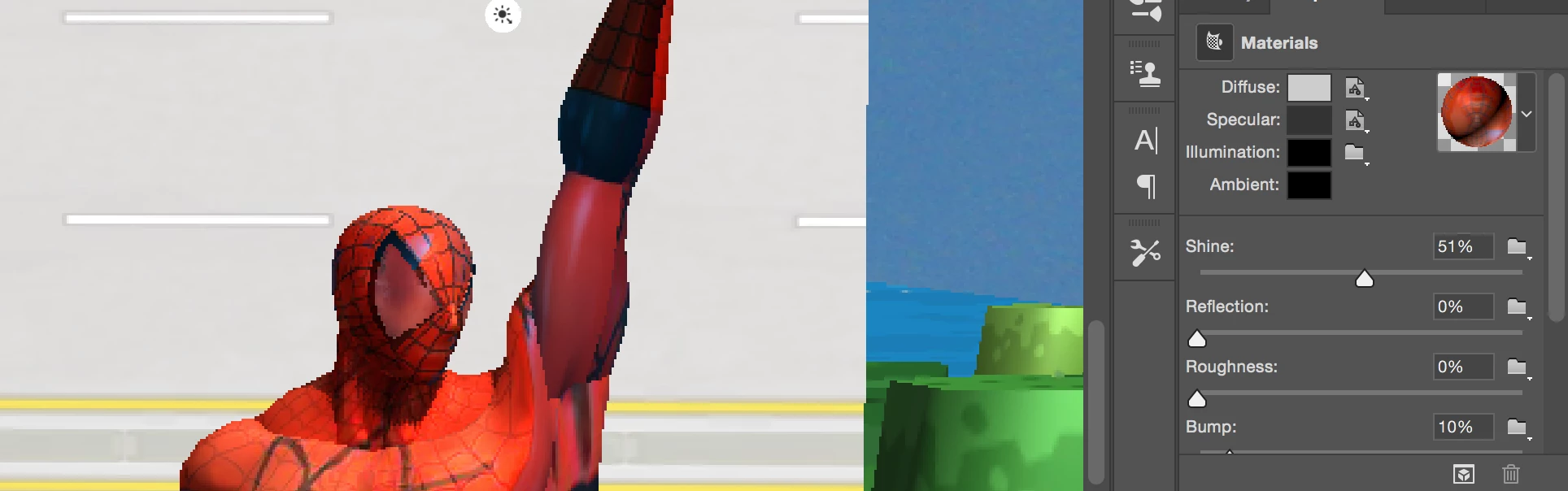 I'm very new to 3D models in Photoshop, I've clicked all around and when trying to use the Specular option or Illumination with the same texture it will just make the model brighter in color.