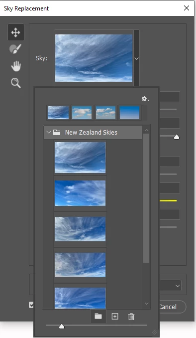 With the improved Sky Replacement feature, you can download even more free high-quality sky presets. You can also import several of your own sky images at once. To learn more, check out Replace the sky in your photos.