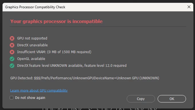 Photoshop suddenly decided today that my NVIDIA GeForce RTX 4070 Super is foreign, insufficient, and unsupported: