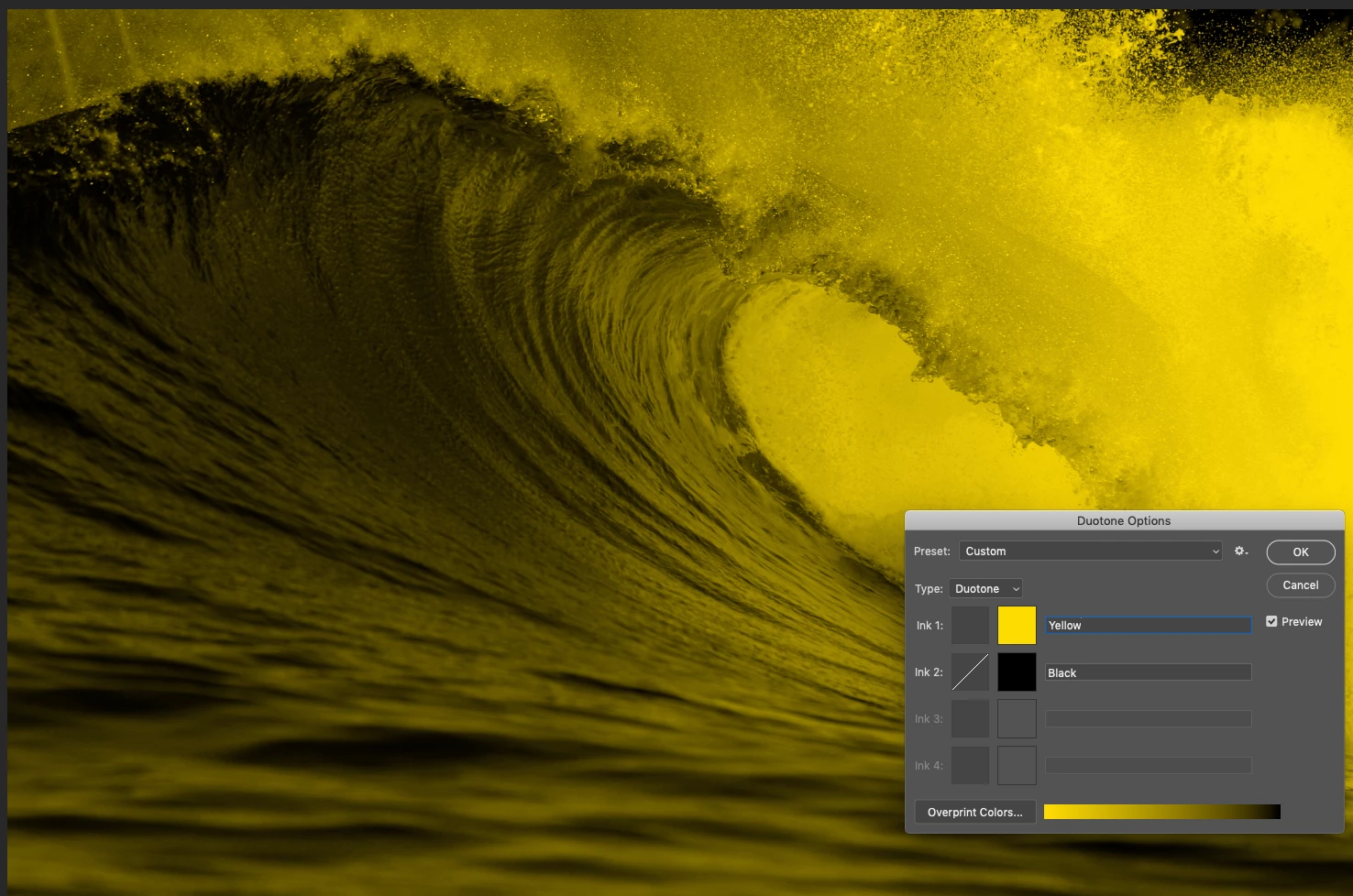 I have tried making a duotone. I have also tried to make two layers and use the layer options. But it seems that the greys in the image don't stay grey, they are changed by the background colour? The colours go from yellow to black