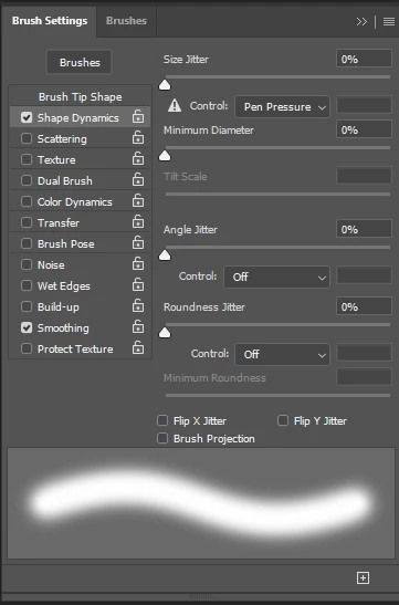 I have recently gotten photoshop to color scanned in line art and while drawing, I noticed the lack of line variation. So went to check to turn on pen preasure but when I did, a warning icon appeared next to it. Any ideas as to what this means and how to fix it?
