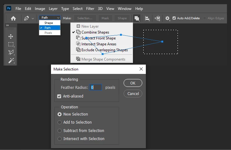 I have been learning photoshop with skill share recently and we have gotten to a part where we are using the lasso tool a lot for selecting certain images. There was another way to make these selections involving the pen tool and my first couple days using  it was very beneficial to the process and getting very specific with my selections. But recently when i make a selection with my pen tool and whether its add or subtract it takes away the main selection and only focuses on the pen tools selection. If anyone could please help me out it would be great cause ive been trying for a week now and would love to get back in the groove of things.