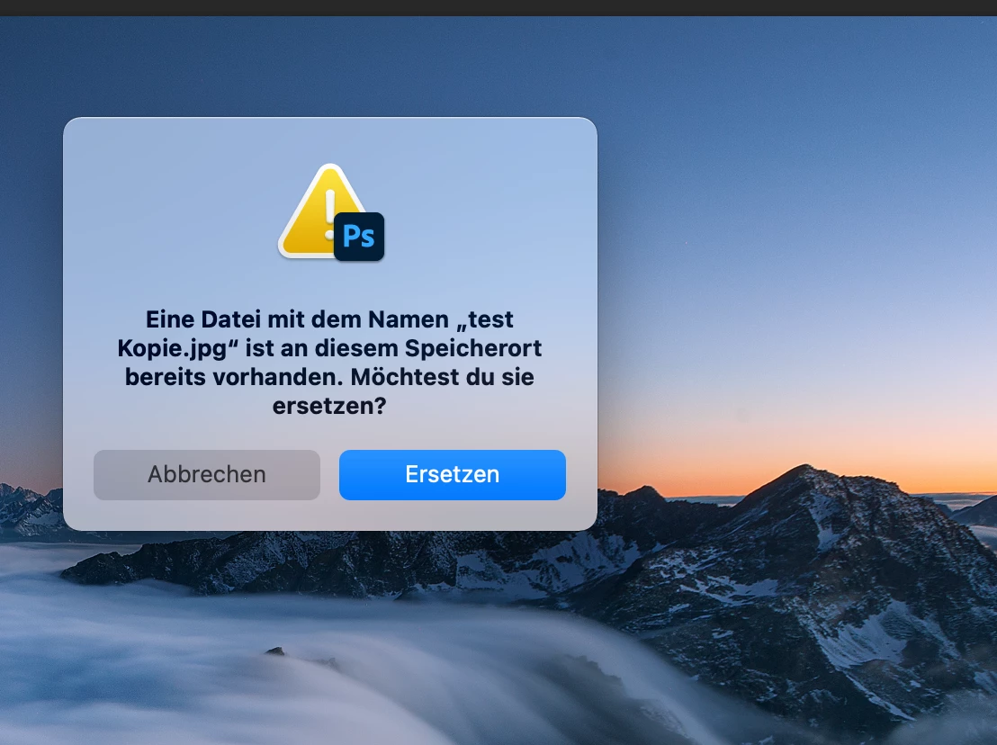Now PS will note the the file already exists and ask if it should be replaced. However, even when choosing replace, it will create something like