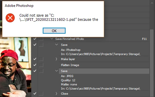I've tried resetting my preferences and restarting Photoshop but the error still happens.