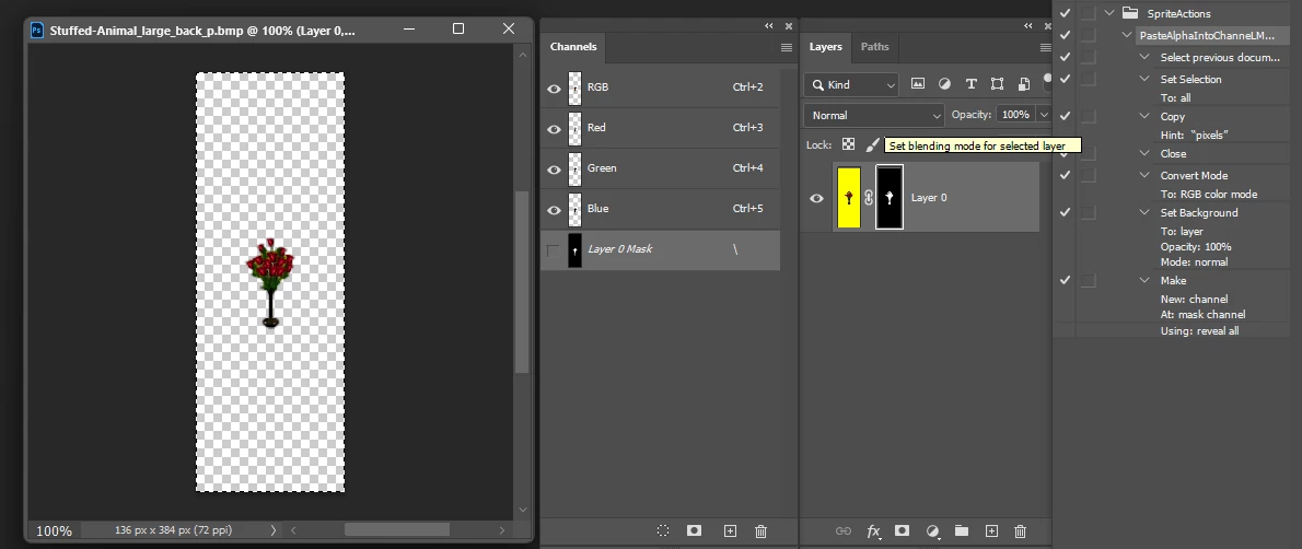 I have many recorded actions that paste an alpha channel from one image into a new quickmask of another bitmap to create a transparent image. I have used this method for over 20 years wtih photoshop and now it will no longer record pasting into a mask on the newly created mask layer, but instead it pastes into a new layer which is useless to me.