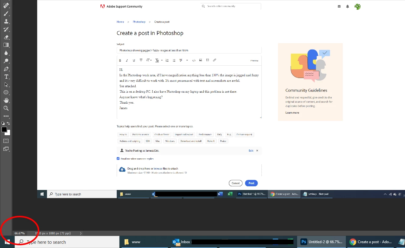 Photoshop showing jagged / fuzzy images at less than 100%