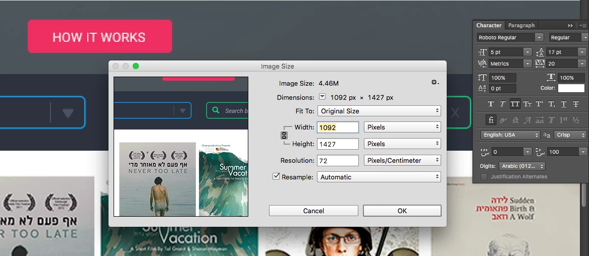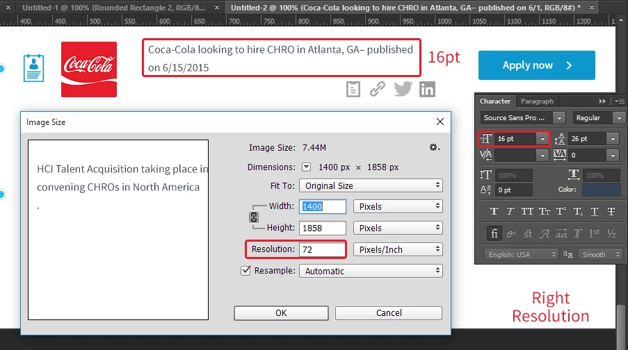 When I was done, I was baffled. The caption of the 4th scene was smaller than the rest.  With little time left, I did as most, I adjusted the text size to make it 'look" right.  So, whereas the other scenes has 12 point captions, I had to change the text size of the 4th Smart Object to about 15 points making the end re-scaled result "appear" as the other 12 point captions.