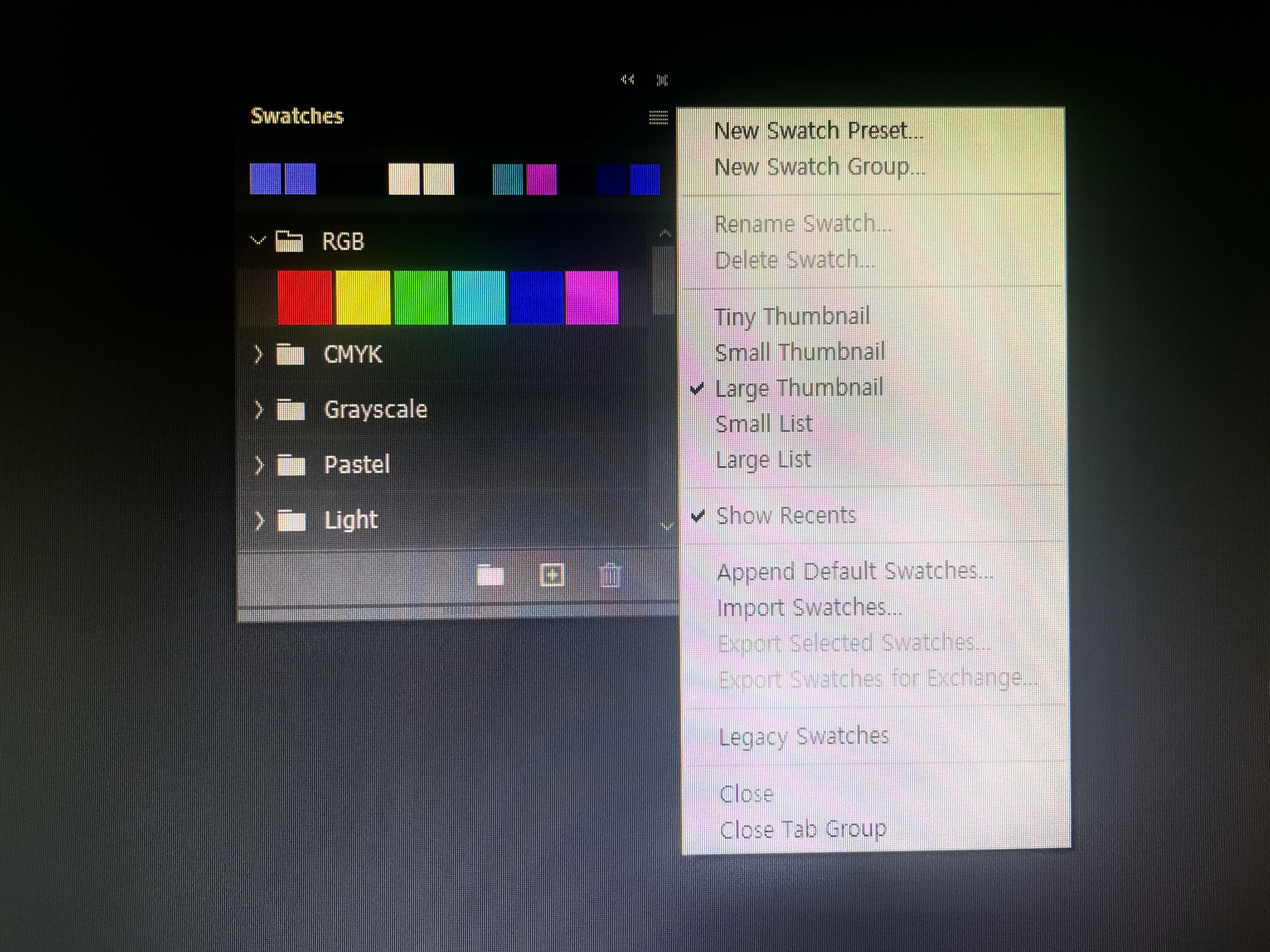 photoshop swatch panel, I can't see the 'Load Swatch' menu on the panel.