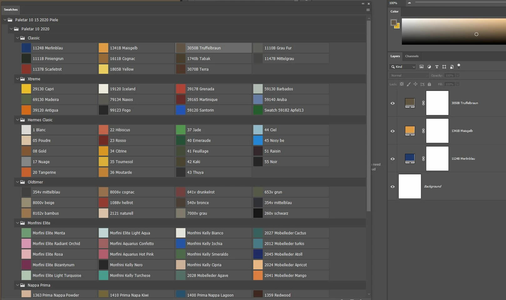 I have a swatch of 400+ colors and i ill need to render them on layers.Is there any method to do that, other one by one?