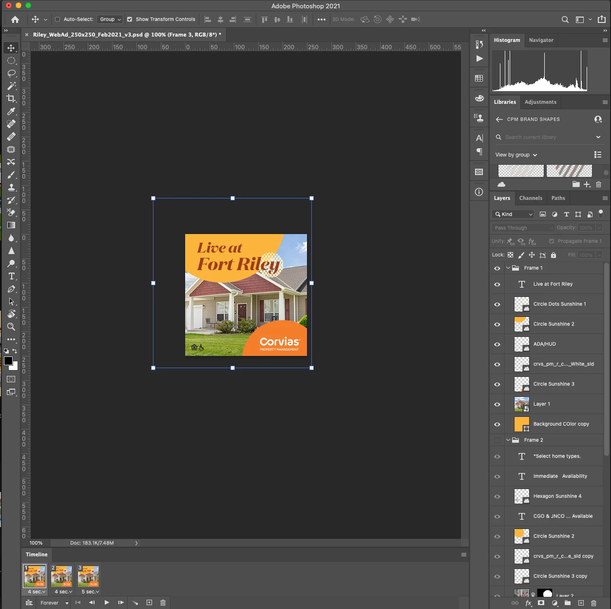 So I've been using and struggling with animating web banners for over 20 years. Animation would be a generous term, all I'm trying to do is a 3-frame GIF and set the seconds on each frame.