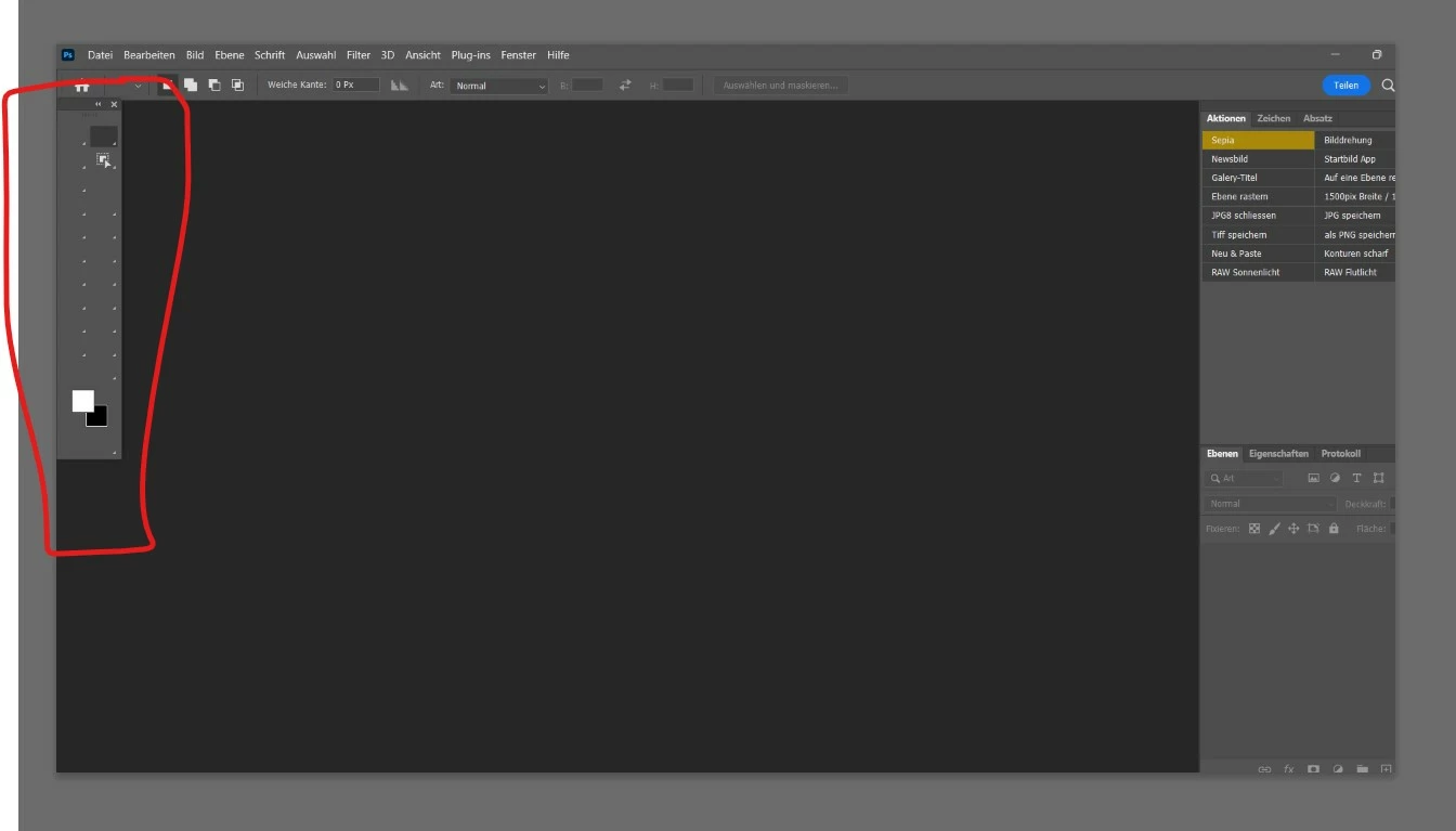Kennt jemand dieses Problem? Die Werkzeug Icons werden nicht mehr angezeigt. Sie fehlen bei jedem Start von Photoshop. Wechsle ich dann den Hintergrund von hell auf dunkel oder von dunkel auf Hell, erscheinen sie wieder.