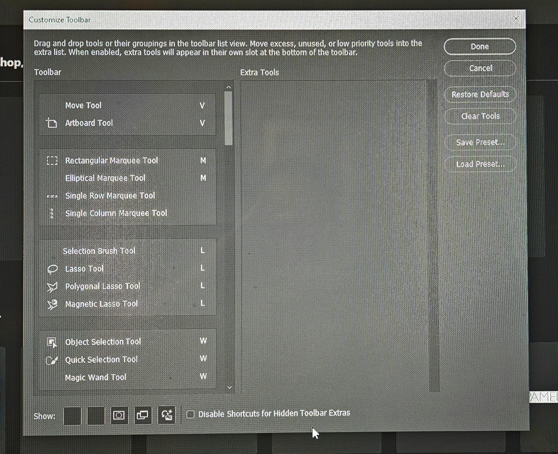Photoshop Toolbar Missing Icons & Key Icons Missing from Edit Toolbar