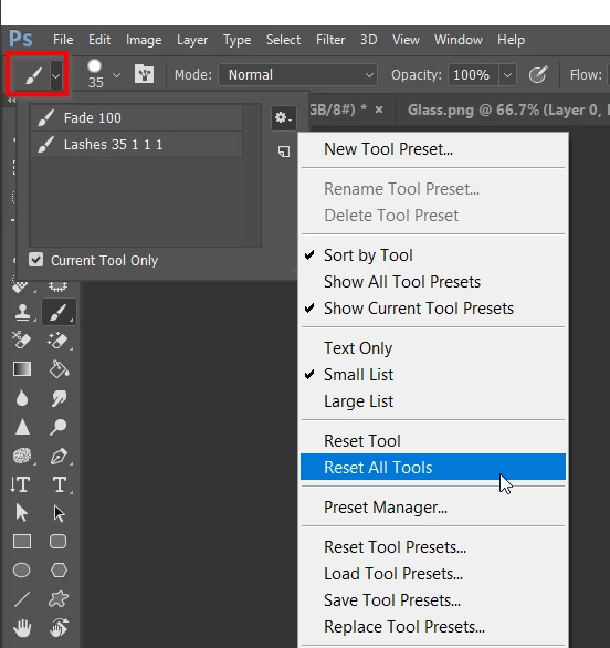 - Reset Photoshop settings (shift/ctrl/alt) on start-up
