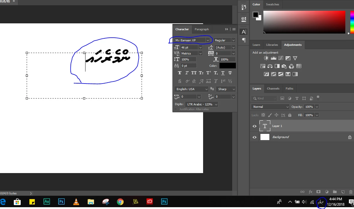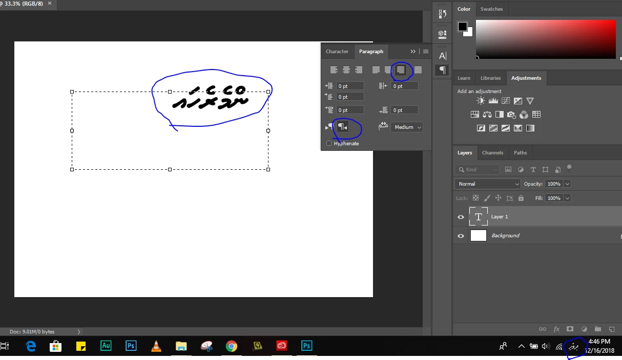 Photoshop Type tool is typing the RTL (Dhivehi) reverse in Unicode fonts