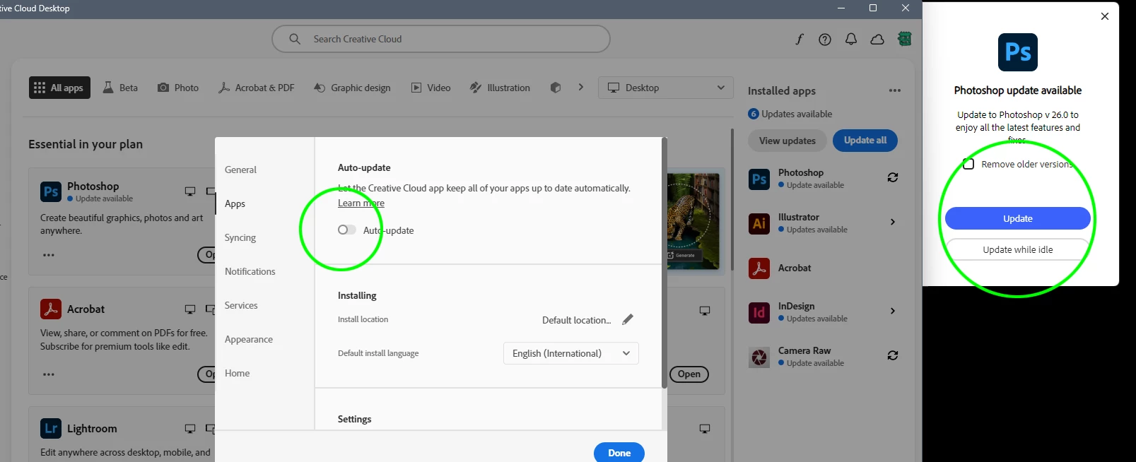 How can Photoshop simultaneously boast an update when auto-update in CC is switched off? This, to me, is contradictory and is a oversight. aka a bug. Please see screenshot