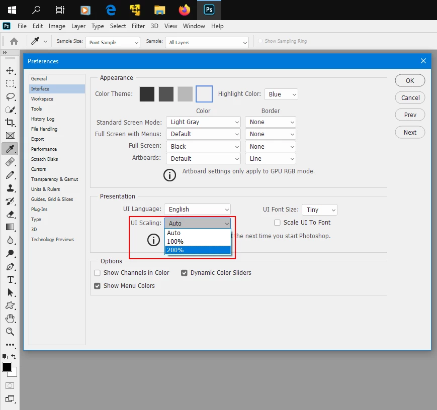 Photoshop user interface font is too small