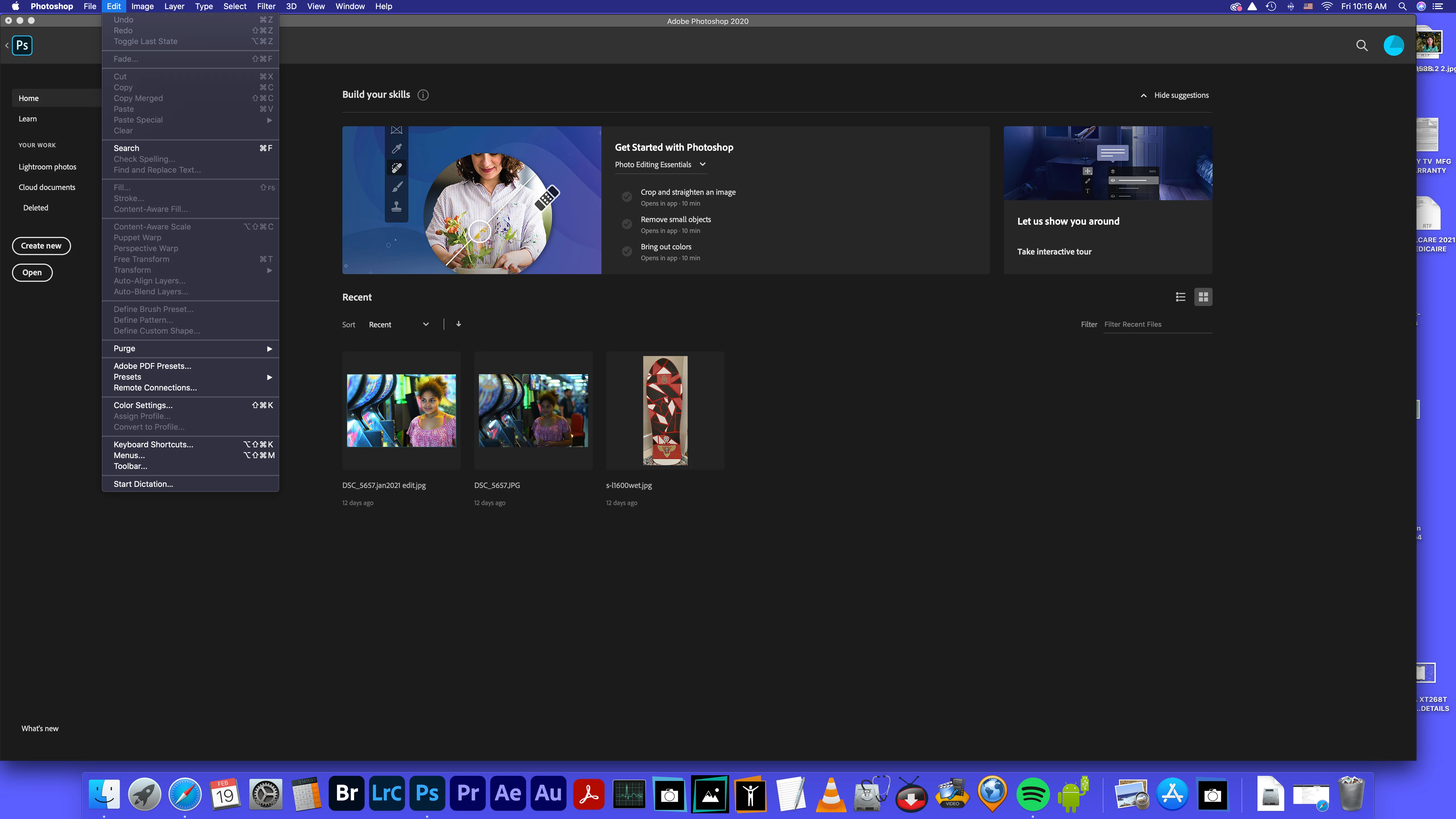 Can't find "preferences" in V 21.2.1 on my 2020 Imac with Catalina. After "Edit" Almost everything is greyed out, and there are no preferences, not even a greyed out preference tab. They have been moved.