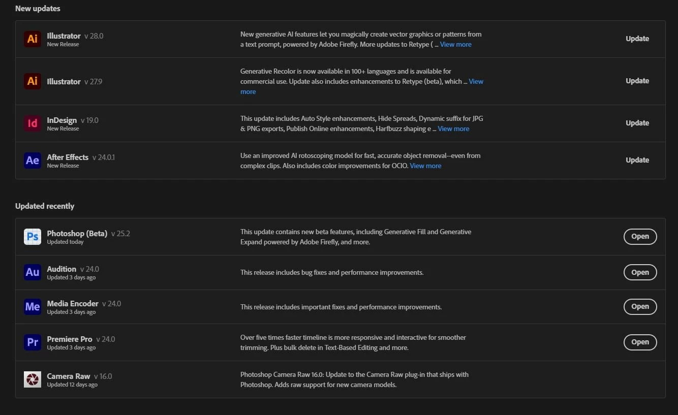 I have Photoshop (Beta) installed and that will update...it is currently up to v25.2