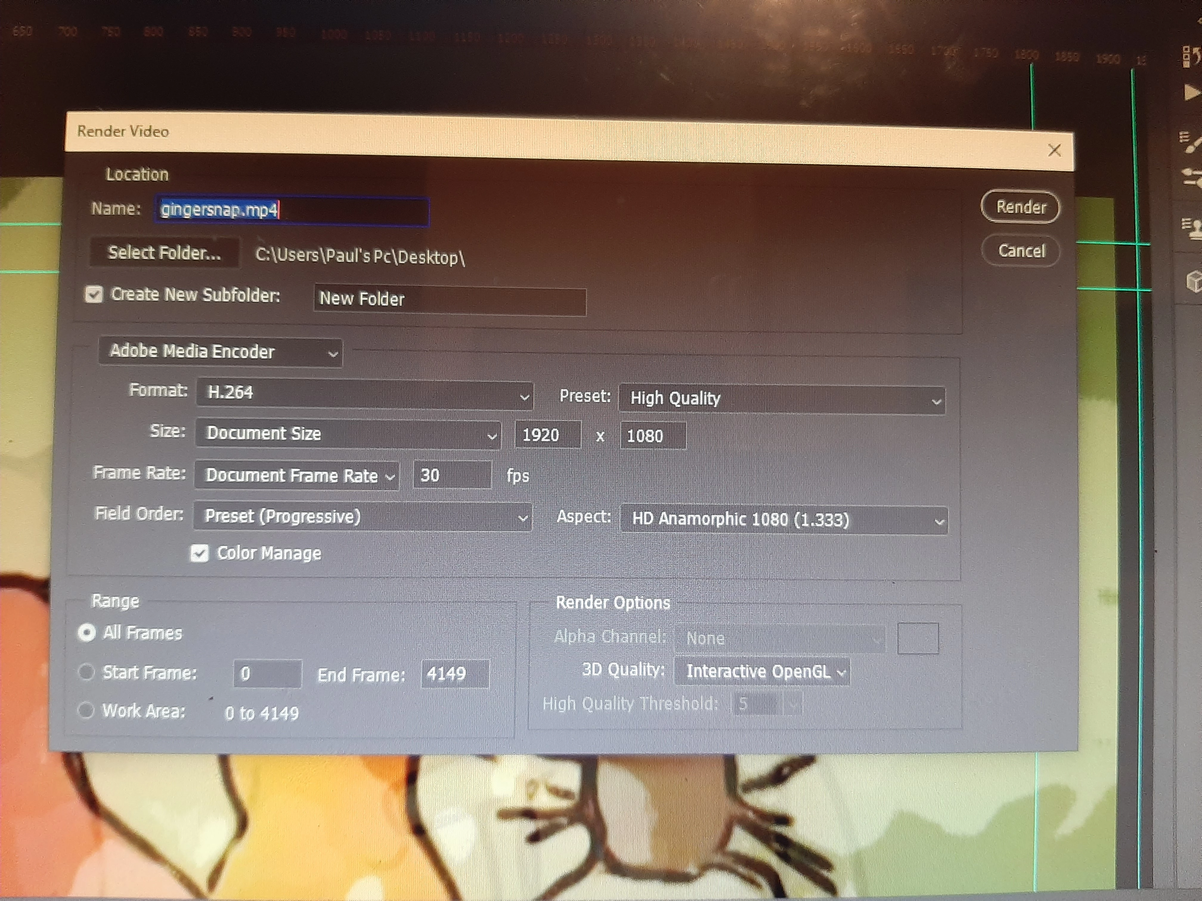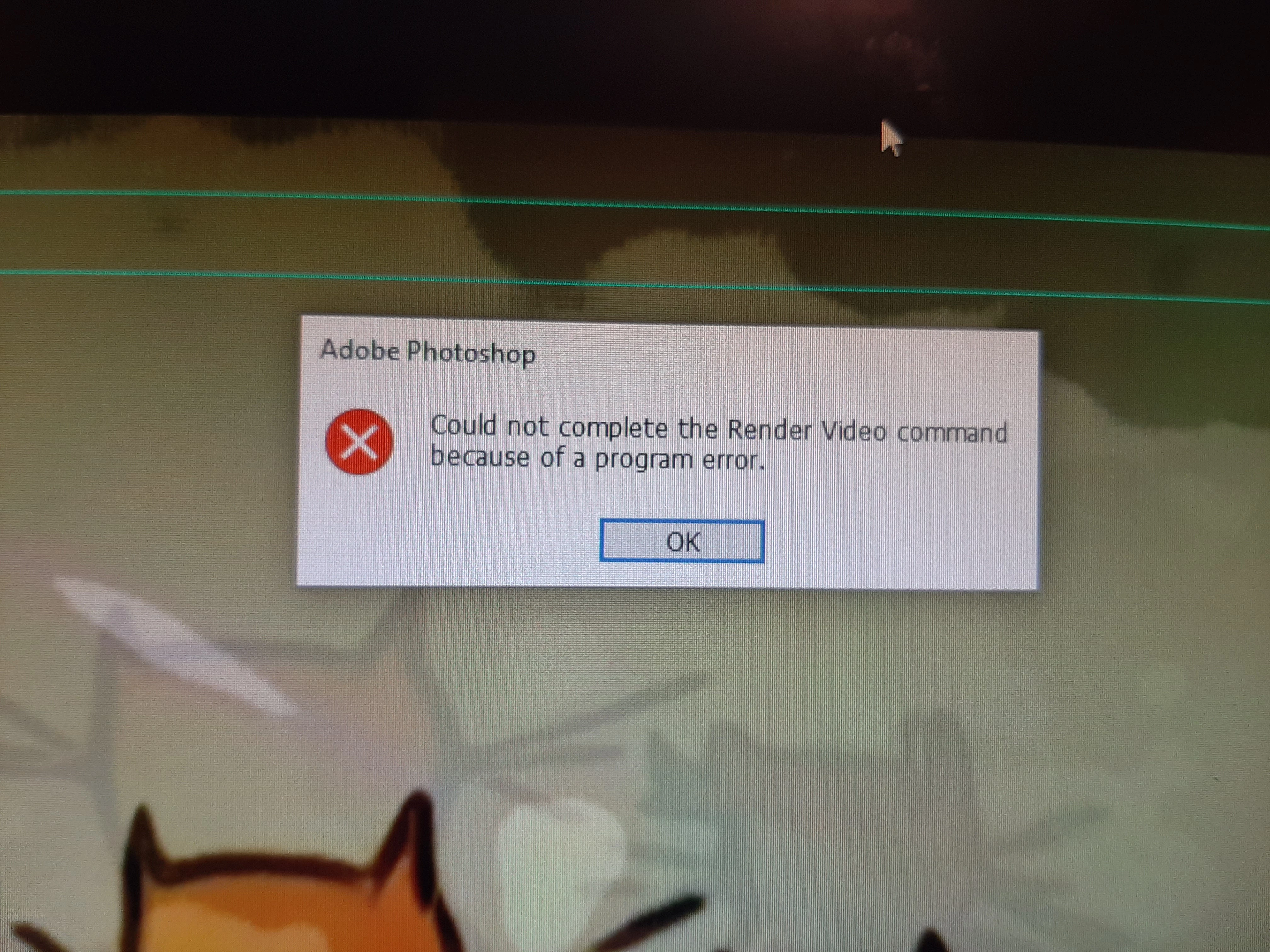 AAnonymousForum|Forum|5 years agoMay 6, 2020QuestionPhotoshop video rendering errorForum|Forum|5 years agoMay 6, 20201 reply707 viewsHi,Please can someone advise me.I have been rendering in ps cc for last few days with no problem.Now its telling me that it could not complete the render video command because of a programme error. Deos anyone know a way out and why its started to happen?Thank you Import and exportProblem or error
