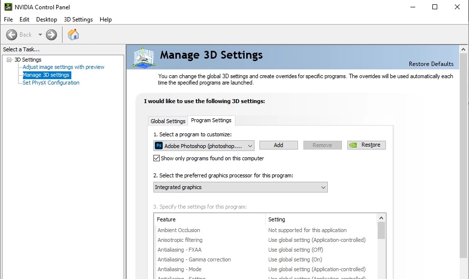 You should set Integrated Graphic up for running the Adobe Photoshop.