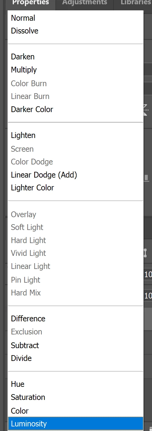 Photoshope 2025 Some Blending Modes Greyed out