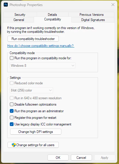 I have a problem with my Photoshop, it is not showing the home screen or even my account photo or saving files to the cloud when it is not in administrator mode, also I have Illustrator on my PC, and it works just fine, how can I solve this problem, so I do not have to run the program as administrator each time I use it
