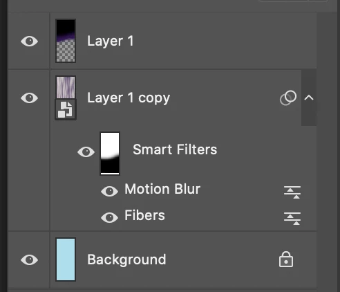 Next on the top most layer run Smart Filters>Blur>Motion Blur and adjust the blur at 90° til you get the streaks as you like.